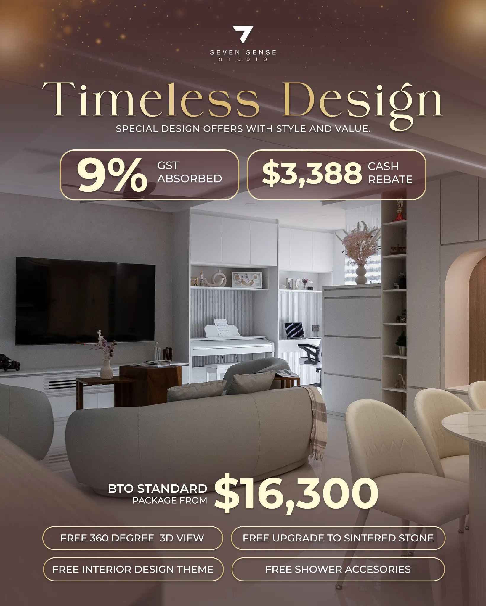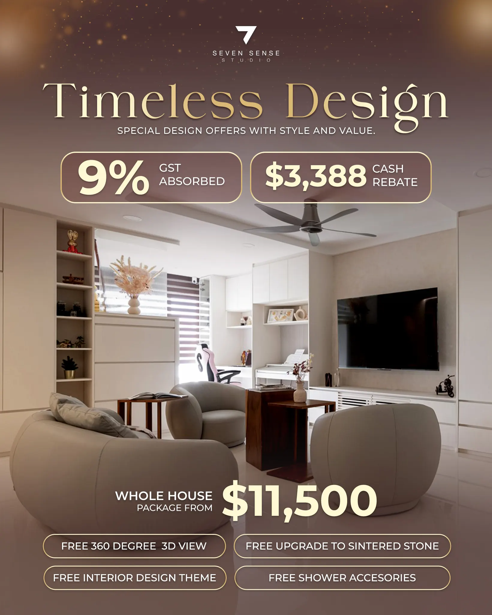 7 Sense Studio Jackson Lian is a responsible, friendly and professional interior designer. The materials and workmanship are magnificent. Almost 3 years never bring me trouble.